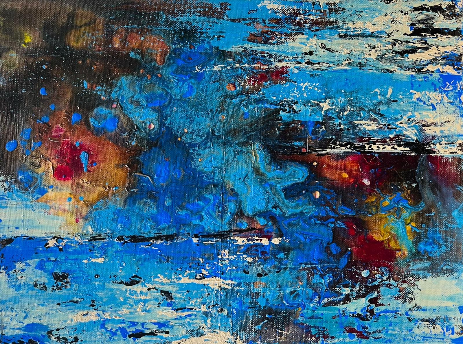 Title: Cerulean Rhapsody, Medium: Acrylic on Canvas, Dimensions: Year : 2024 Artist : Ashwini Prasad Krishnamurthy