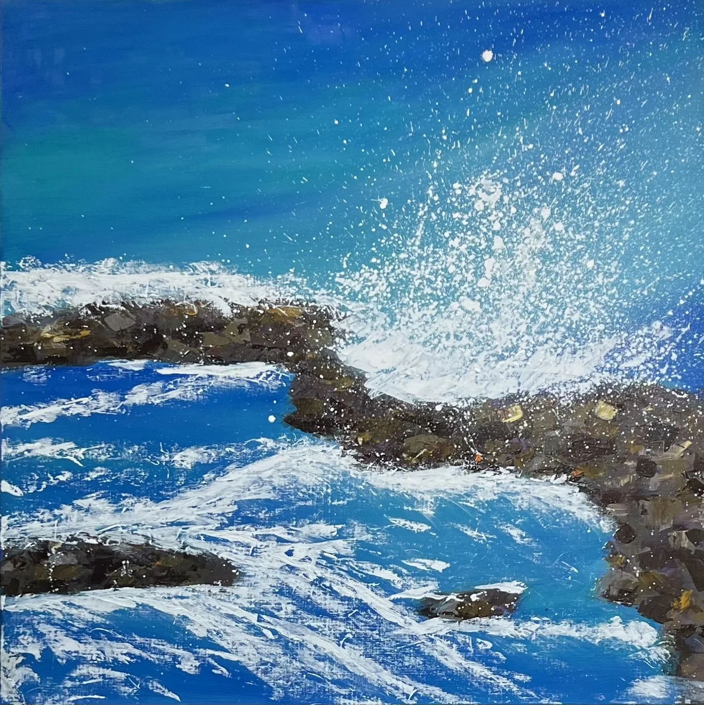Title: What the Waves Say; Medium: Mixed media on Canvas; Dimensions: 34x 34 cm with frame/30.5x 30.5 cm without frame; Year: 2025; Artist: Chaitrali Bandekar