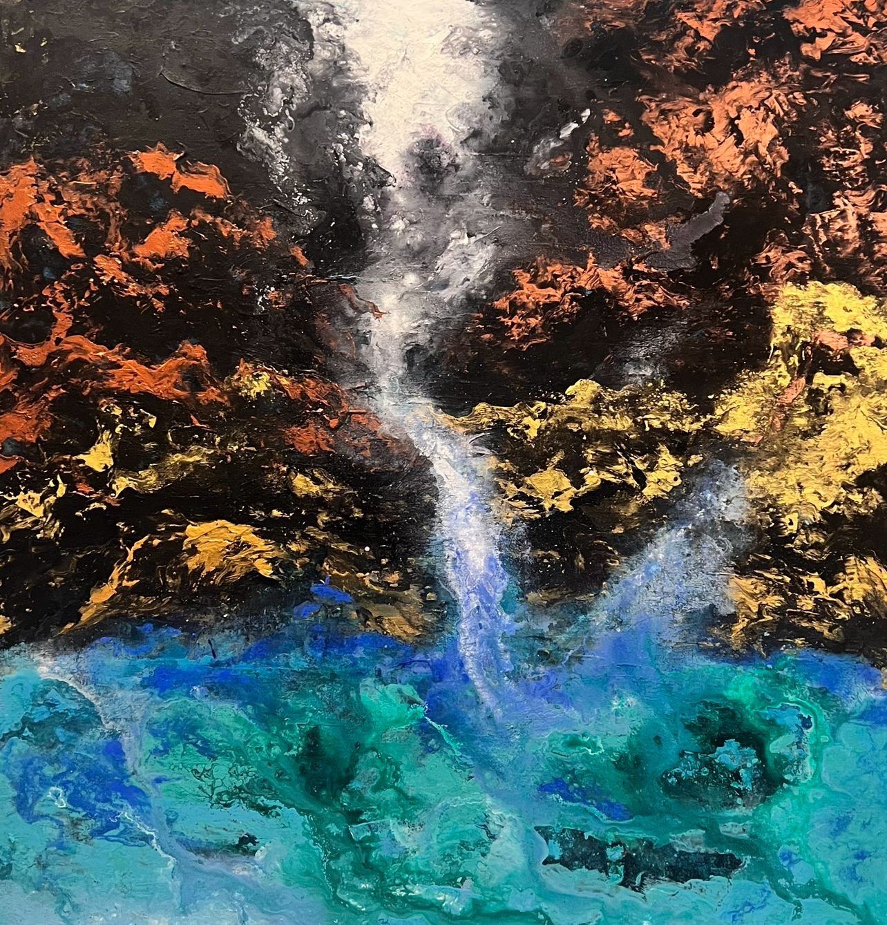 Title: Tranquil Flow Medium: Acrylic on Canvas Dimensions: 100/100 cm Year: 2023 Artist: Ashwini Prasad Krishnamurthy